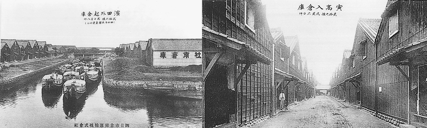 治後半に竣工した浜田外起倉庫、寅高入倉庫(昭和3年頃撮影)
