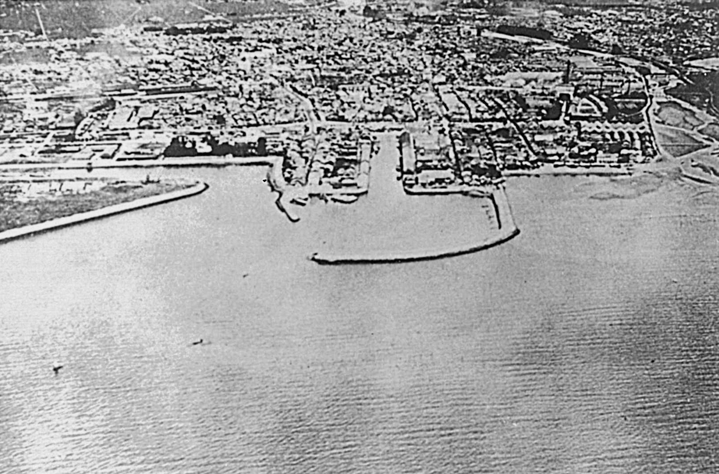 昭和3年の四日市港 左に千歳町の埋め立て地ができあがったばかり